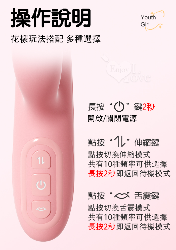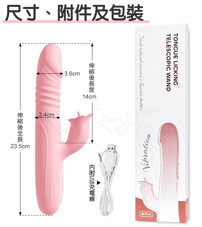 勞樂斯.愛潮~舌吻伸縮多功能按摩棒﹝10頻伸縮+10頻舌撩震+USB便捷充電﹞
