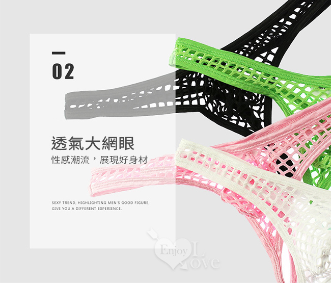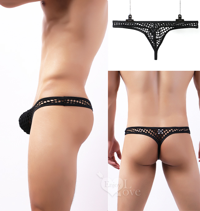 | 《 Enjoy Love 》性感半透大網孔男士丁字褲 - 黑﹝XL﹞