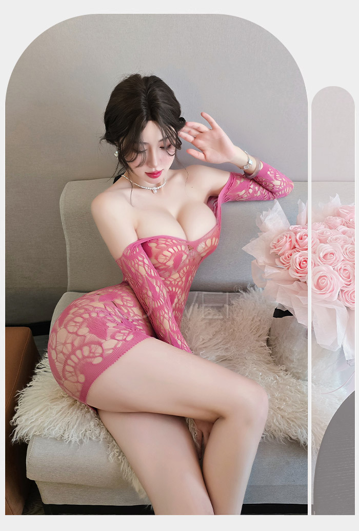 嵐花嫣然.知性提花大網眼透膚性感包臀網衣【裸粉色】