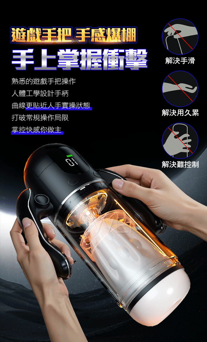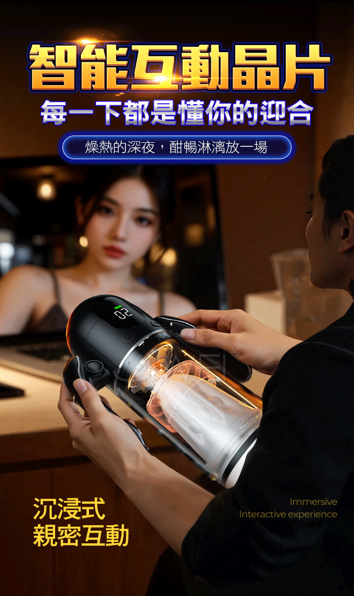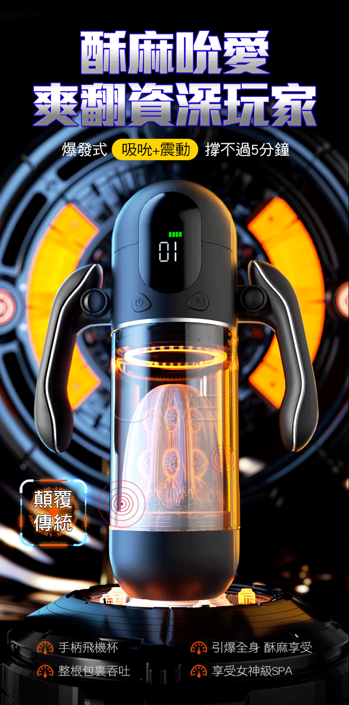 | 喚姬.9頻9速激震吮愛爆榨 透明杯體屏顯真人語音手把飛機杯【震動吮吸款】
