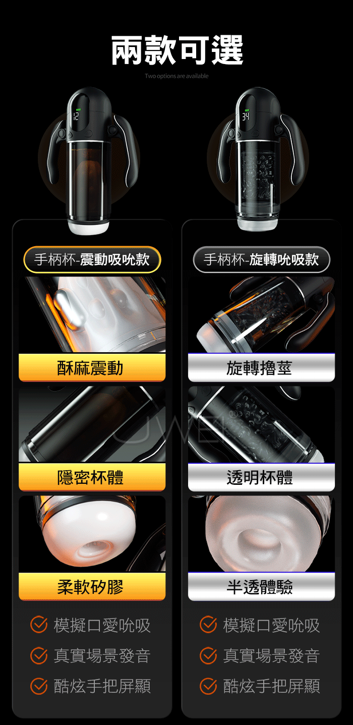 ►您現在的位置:首頁>喚姬.9頻9速激震吮愛爆榨 透明杯體屏顯真人語音手把飛機杯【震動吮吸款】