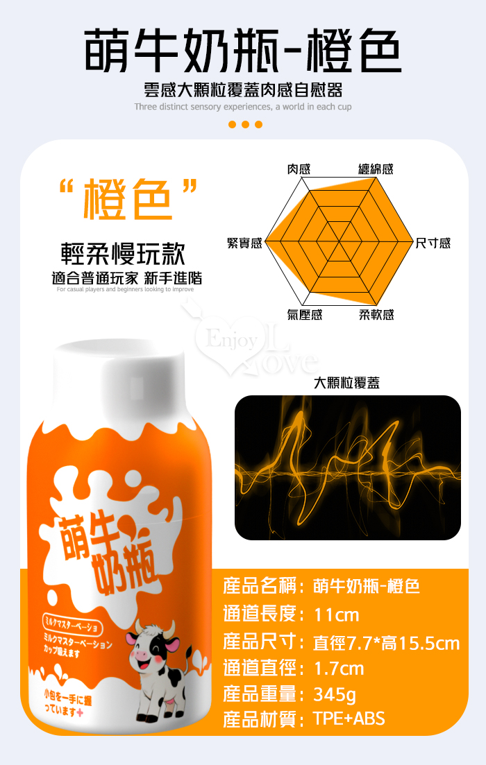 萌牛奶瓶 ‧ 云感大顆粒覆蓋肉感自慰器﹝初階輕柔慢玩款-橙色﹞