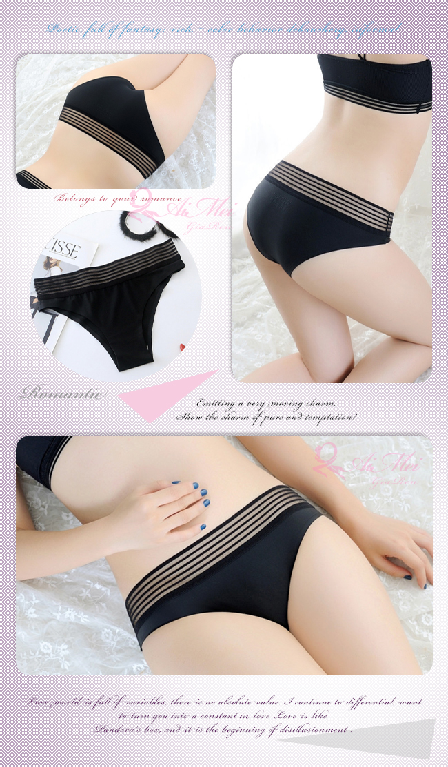 ►您現在的位置:首頁>親密物語!絲滑冰絲條紋褲頭低腰三角褲﹝黑﹞
