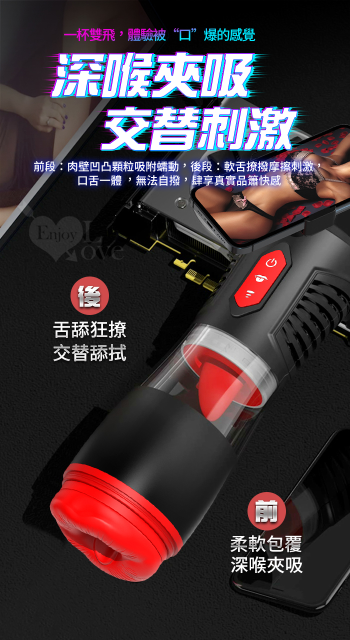 Hgod 007-II ‧ AI新智能自動舌舔+吞莖吮吸快感電動飛機杯﹝4頻收縮吸吮X9頻舌擺舔+淫聲耳機+手機架﹞