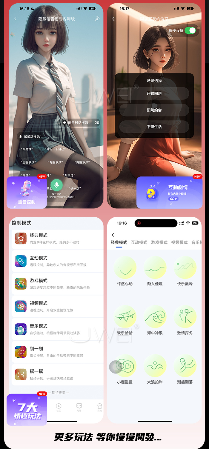 雙震刺激,9頻震動,多種頻率慢慢適調節