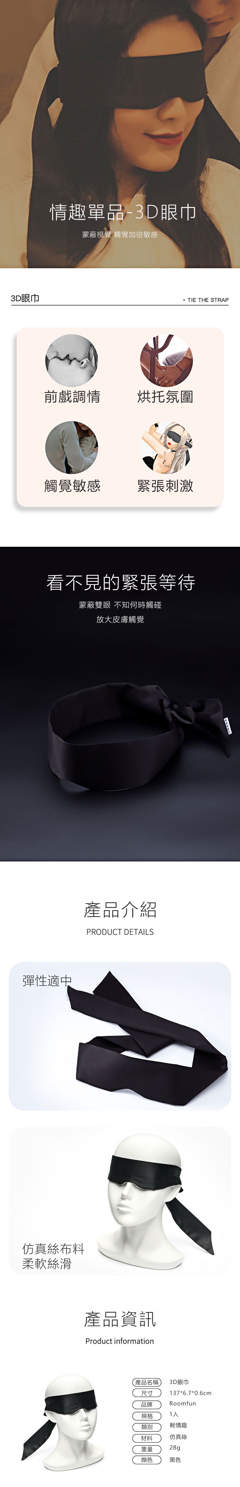 用途:男女情趣之用 材質:聚酯纖維 規格:1入 淨重:約28g 總重:約53g 尺寸:長137x寬6.7x深0.6cm 外盒尺寸:22.3x10.1x2cm 產地:中國 注意:使用前請確實作好溝通,並注意安全! ※情趣用品屬於個人衛生用品,經拆封使用,無法接受退換貨!※ ※每台電腦的解析度皆不同,可能有些微色差,顏色皆以實品為主!※