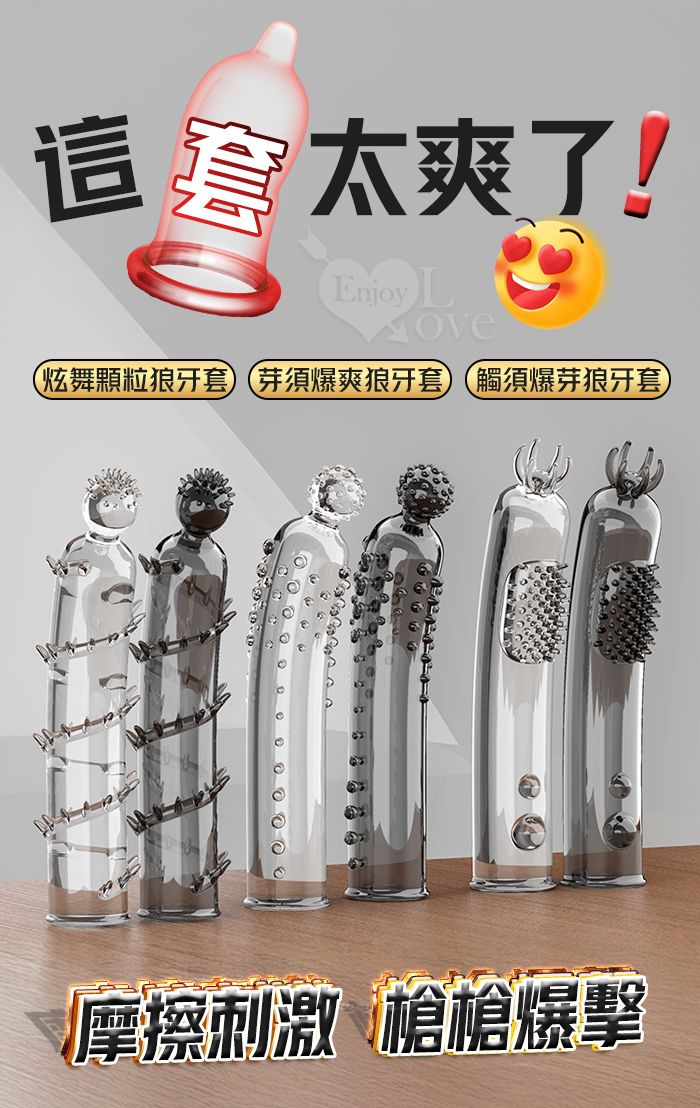 | 取悅 ‧ 觸鬚爆芽狼牙加強套-59個密集顆粒刺激G點~槍槍爆擊﹝透明色﹞