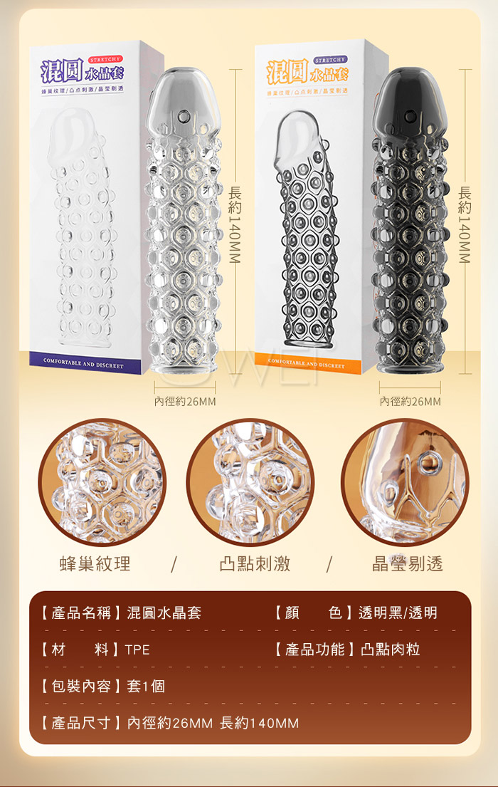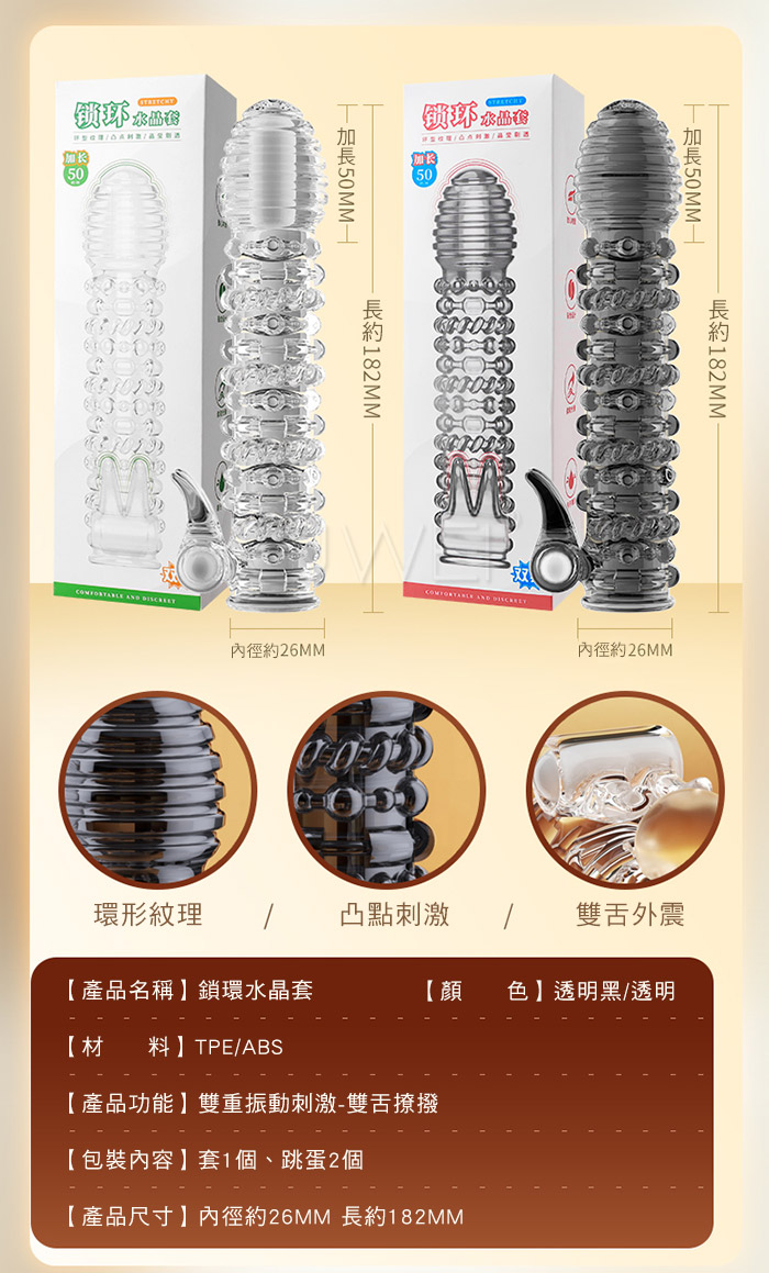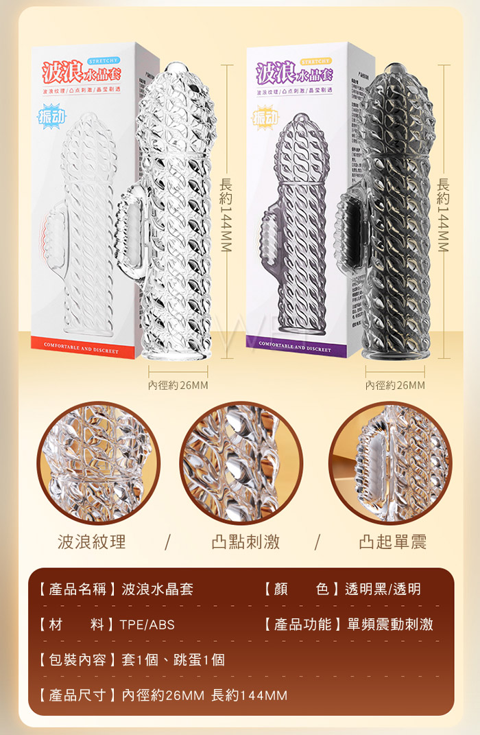 | 波浪.波浪顆粒紋理 凸起單頻震動刺激 加粗水晶老二套【透明】