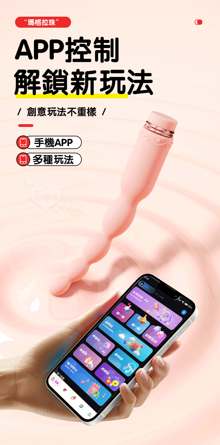 ROSELEX 新手玩家 瑪格連環拉珠按摩棒~10頻強勁震動/細小易入/男女通用/可手機APP遙控