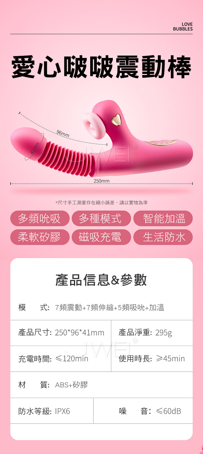 | 愛心啵啵.7頻伸縮頂震+5頻深吻真吸 環片剮蹭真人體溫按摩棒