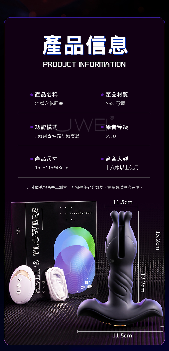 | 地獄之花.9x9段開合+伸縮+強震 超激爽兩用後庭塞【遙控款】