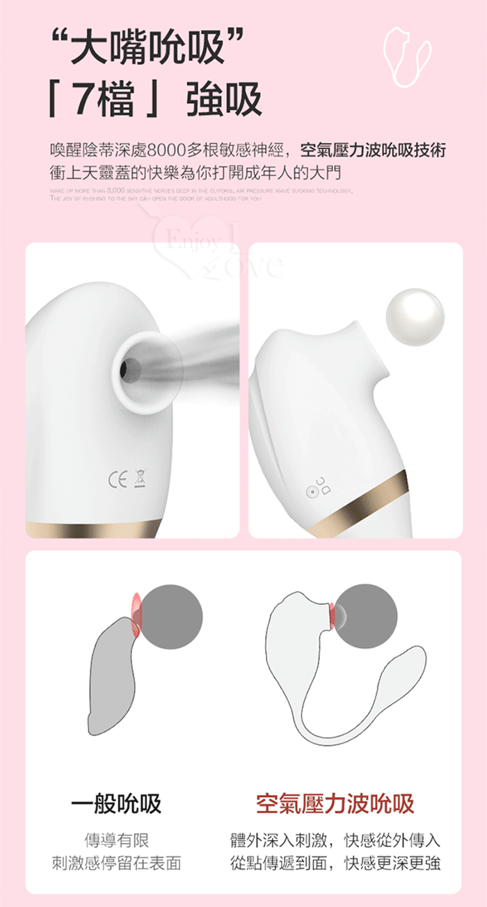 • 7種吮吸模式, 10種震動模式