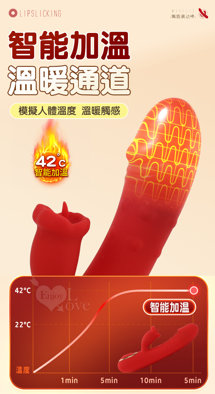 ROSELEX 迷你糕潮神器 雙10頻雙激震舌擊點 CG內外同享加溫按摩器 - 紅