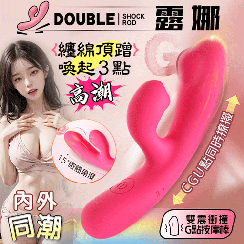 DOUBLE 露娜 ‧ 內外雙震10頻撩撥入體內外刺激衝撞G點按摩棒﹝親膚矽膠/獨特凸點/收腰設計/15微翹角度﹞洋紅