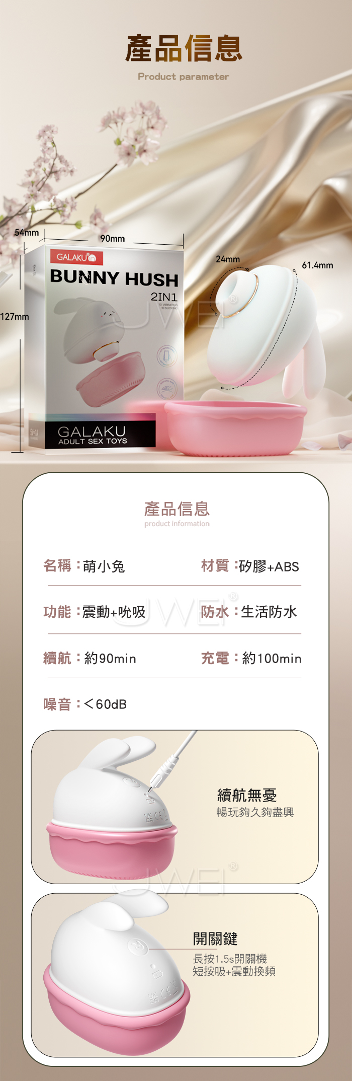 GALAKU.萌小兔 10頻潮吸震顫 一鍵吸震可愛防塵收納 APP智控萌趣跳蛋