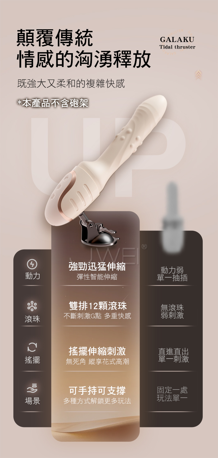 GALAKU.潮汐 10x10頻強勁爽震迅猛搖擺伸縮 雙排12顆滾珠刺激 APP智控衝擊砲機