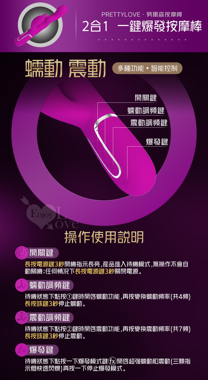 ►您現在的位置:首頁>派蒂菈 ‧ Loursen 勞爾森 4蠕動+7震動 瘋狂蠕動震感內外夾擊入體按摩棒-洋紅