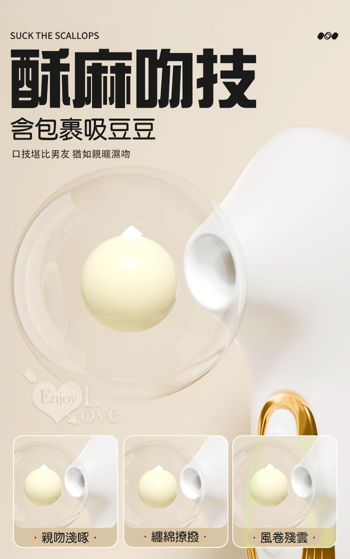吸歡貝.真空吸吮酥麻快感口愛器﹝5段調速強弱+小巧吻吸+USB充電﹞乳白