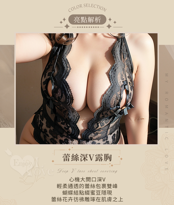 【棉花糖女孩】大尺碼狂野連身衣!深V蕾絲菱形挖空美背開襠連身衣﹝白﹞