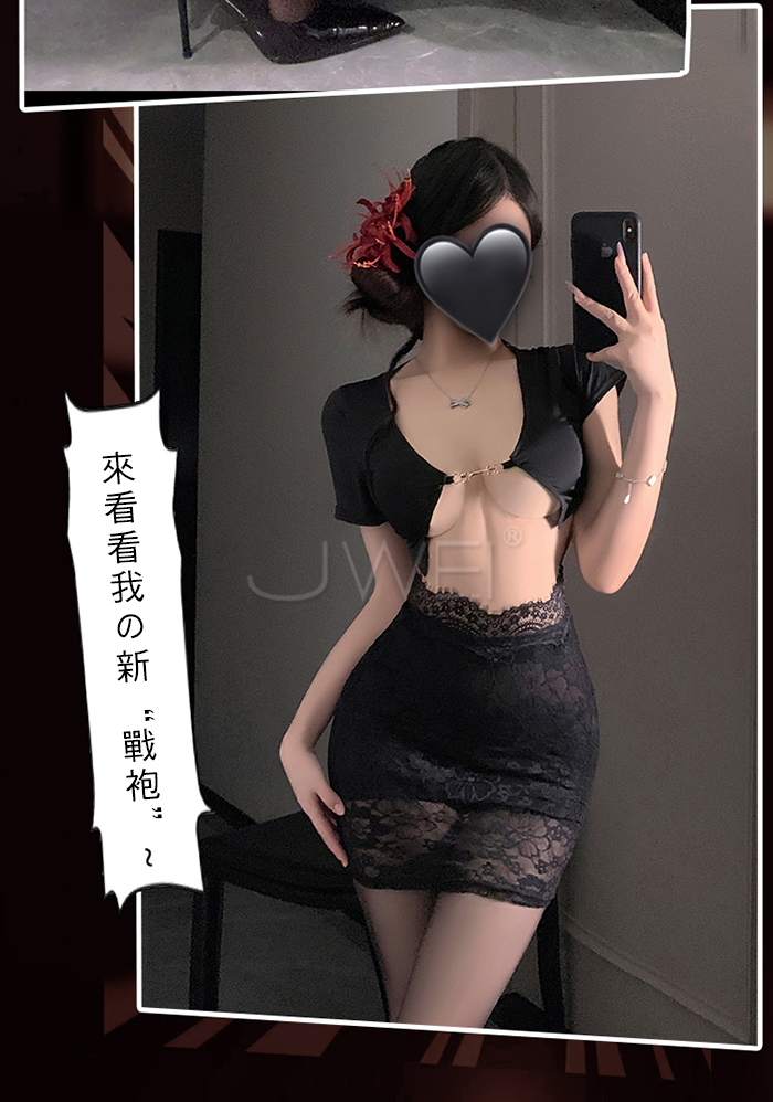 禁欲之花.性感開胸露乳花蔓蕾絲透膚包臀輕熟秘書裝【短上衣+連身裙+T褲】