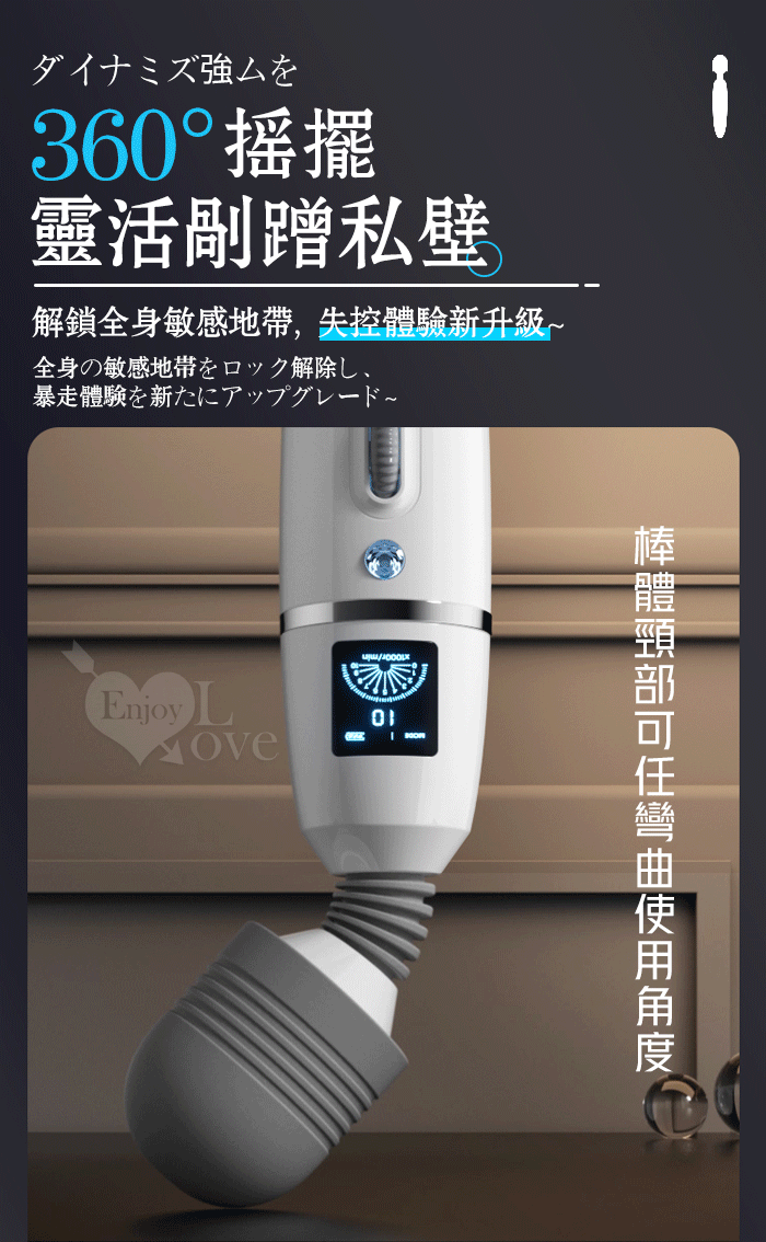 ROSELEX 潮吹王AV棒 ‧ 女優を絕叫 液晶螢幕顯示9頻X8級速大頭強震按摩棒-粉紅﹝智能加溫款﹞