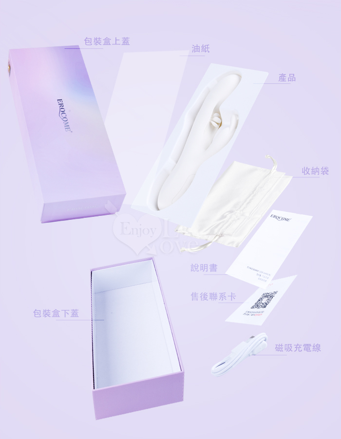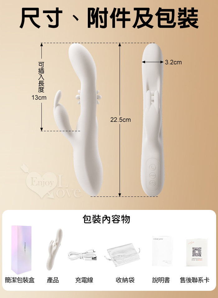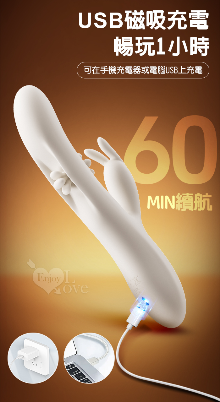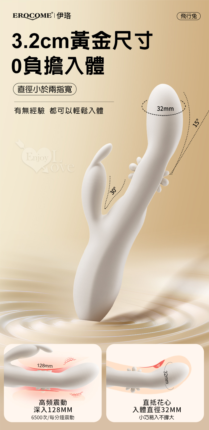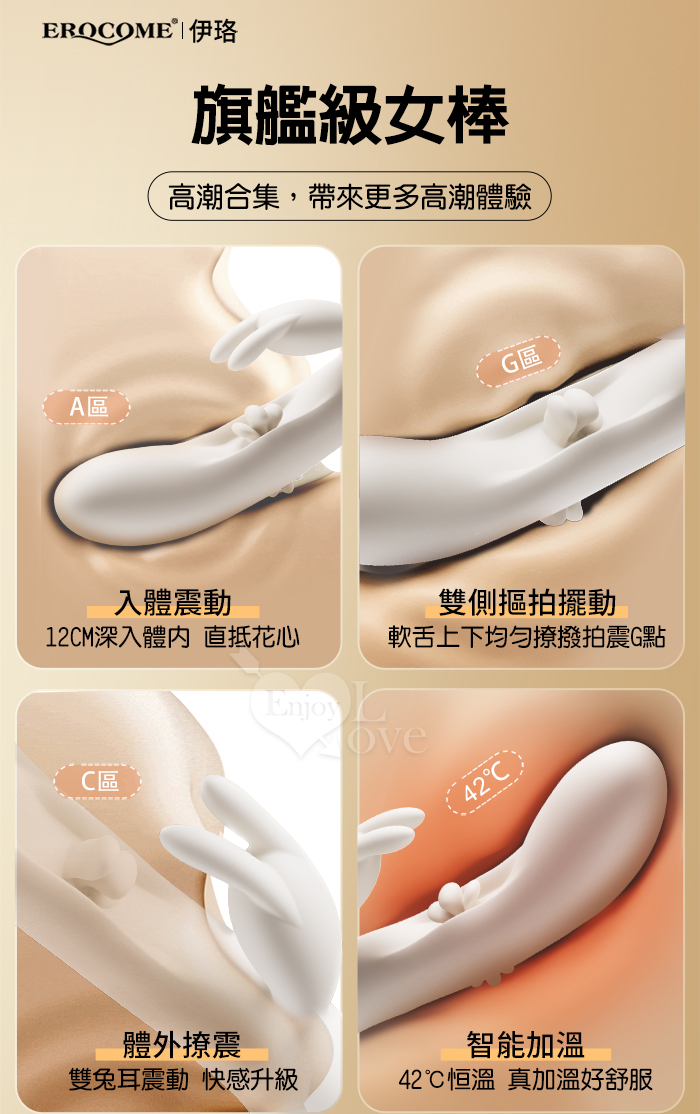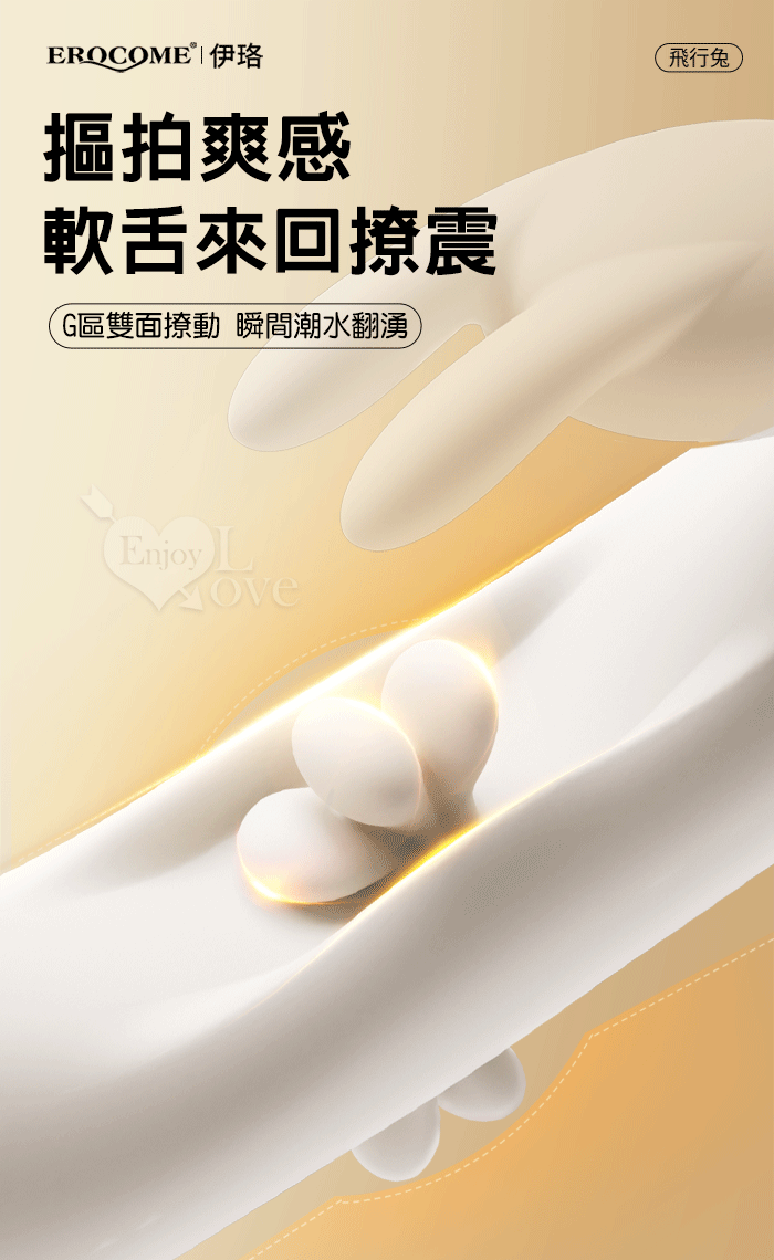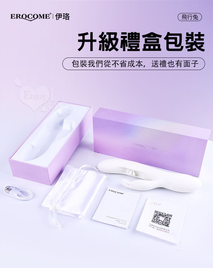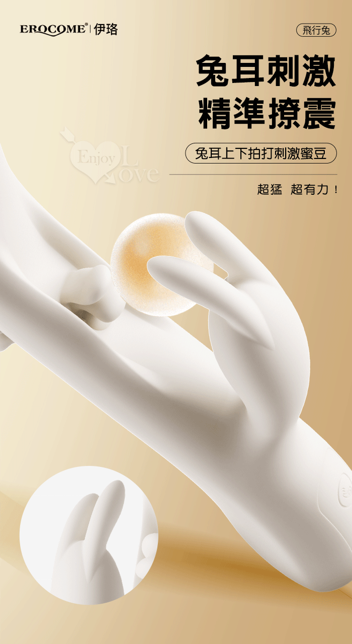 EROCOME伊珞.Flying Bunny 飛行兔 10x10頻飛輪軟舌兔耳震動拍打雙震加溫3合1按摩棒