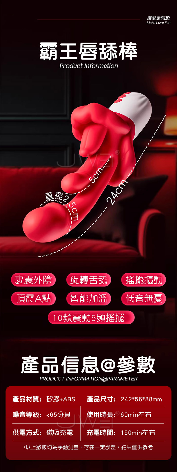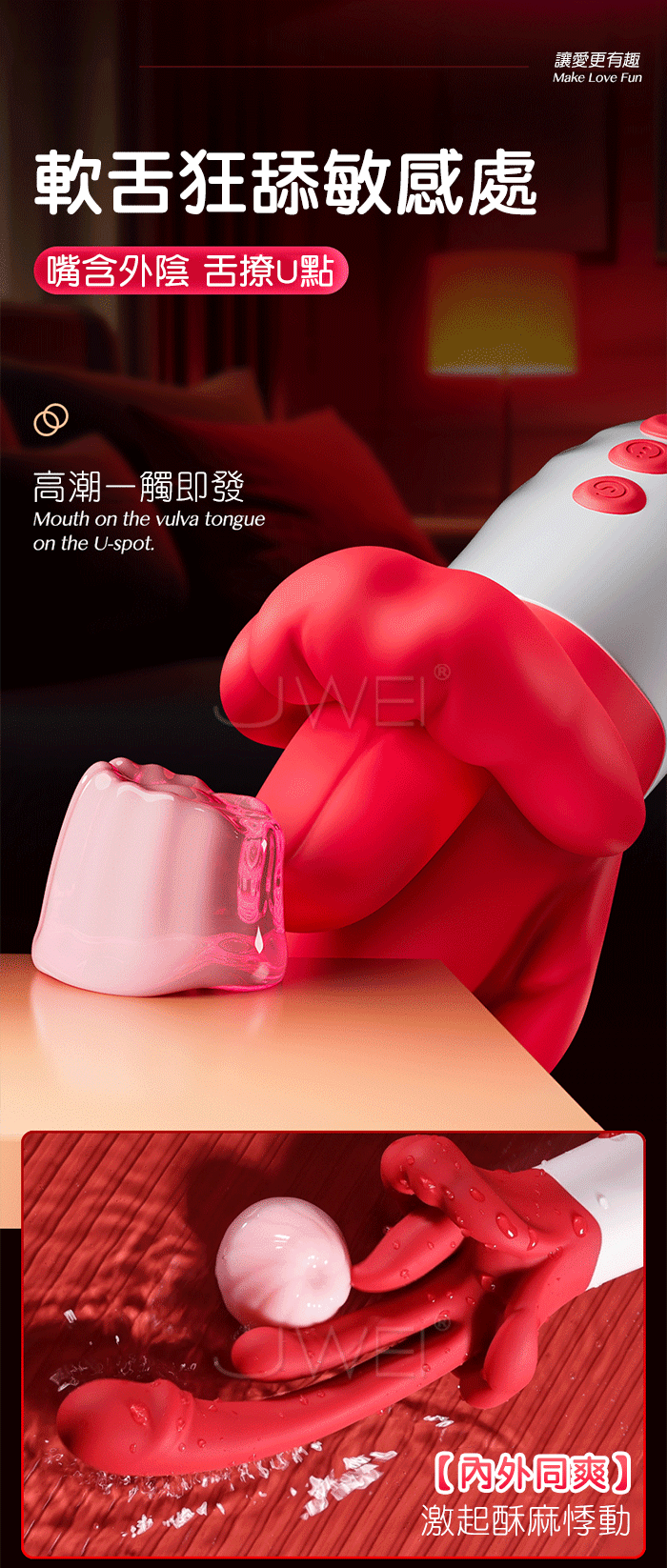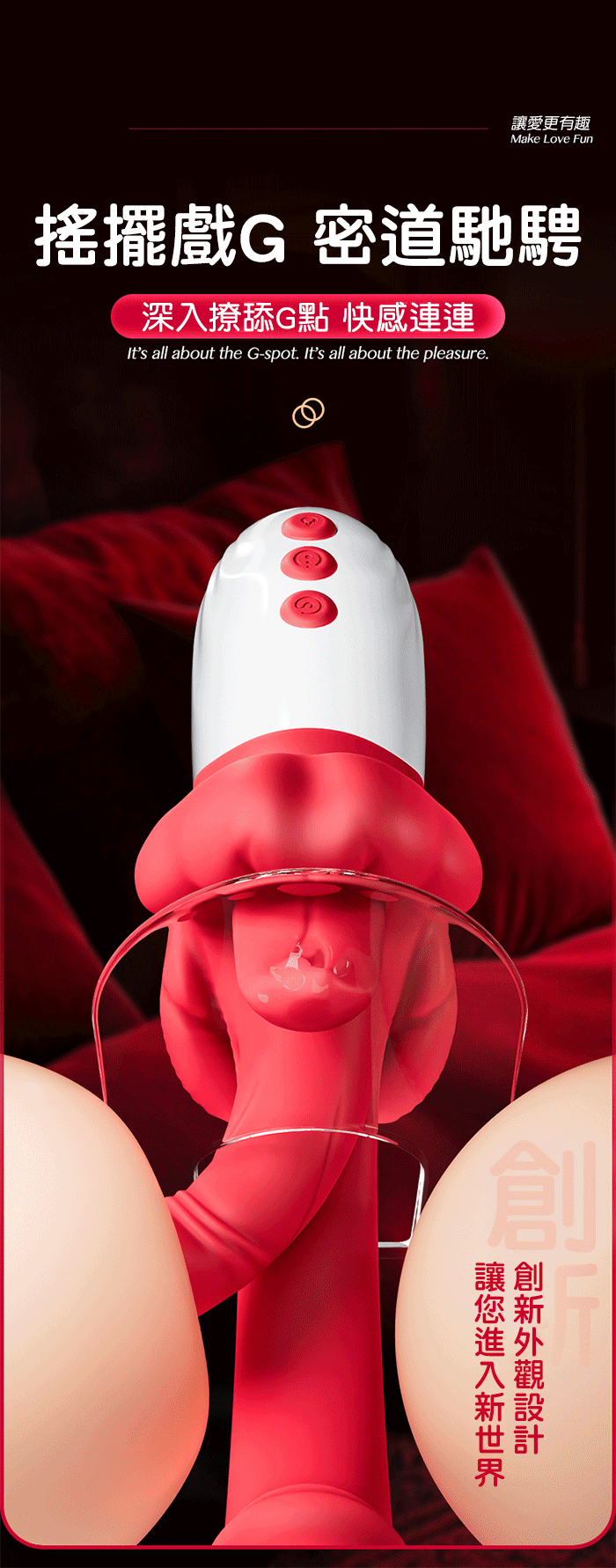 霸王唇.5x10頻旋轉舌舔搖擺撩G 頂震觸芯 三點刺激仿真體熱按摩棒