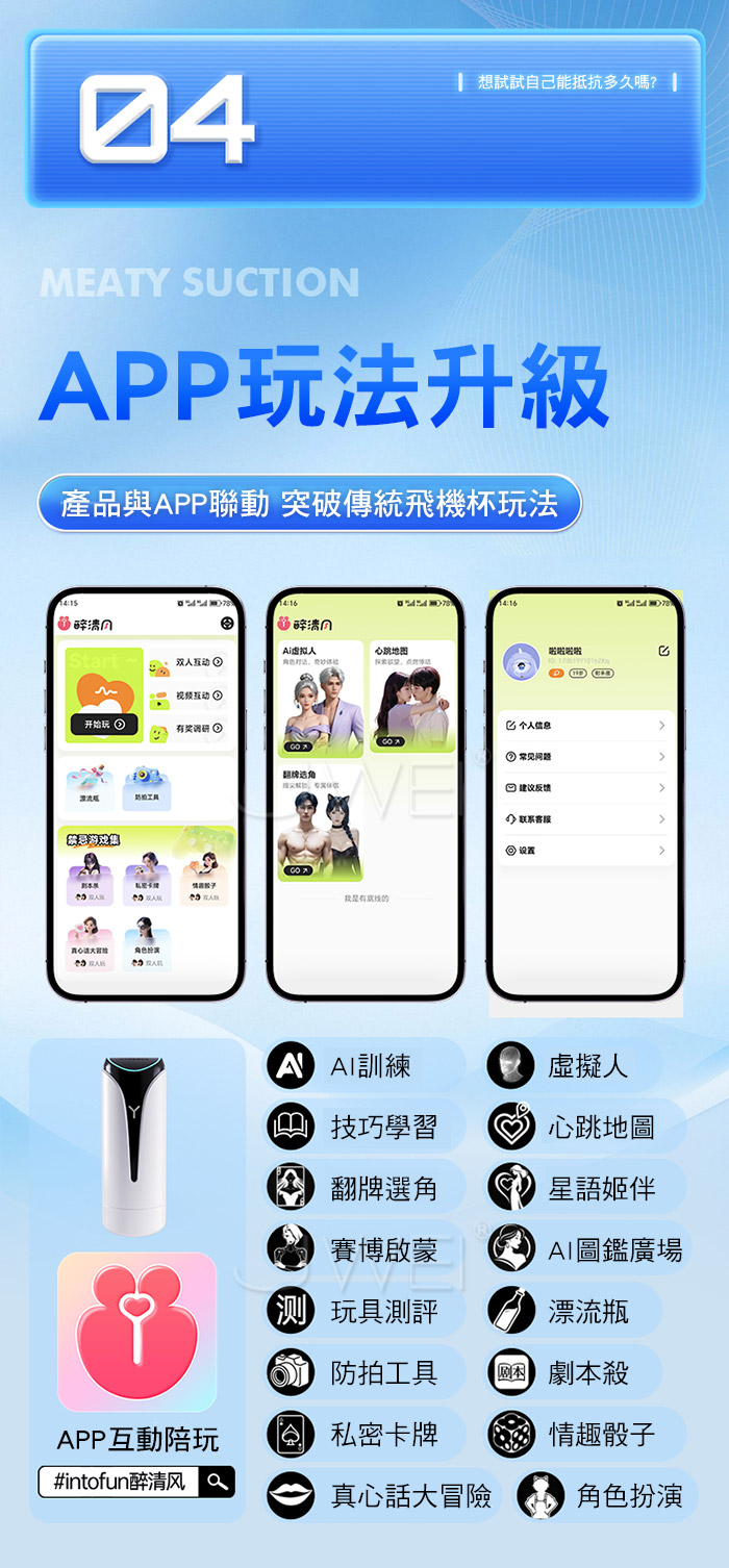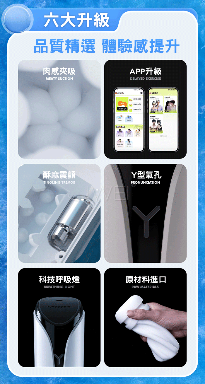 | 藍晶Y.9頻強力酥震 Y型氣孔負壓夾吸肉感APP智控飛機杯