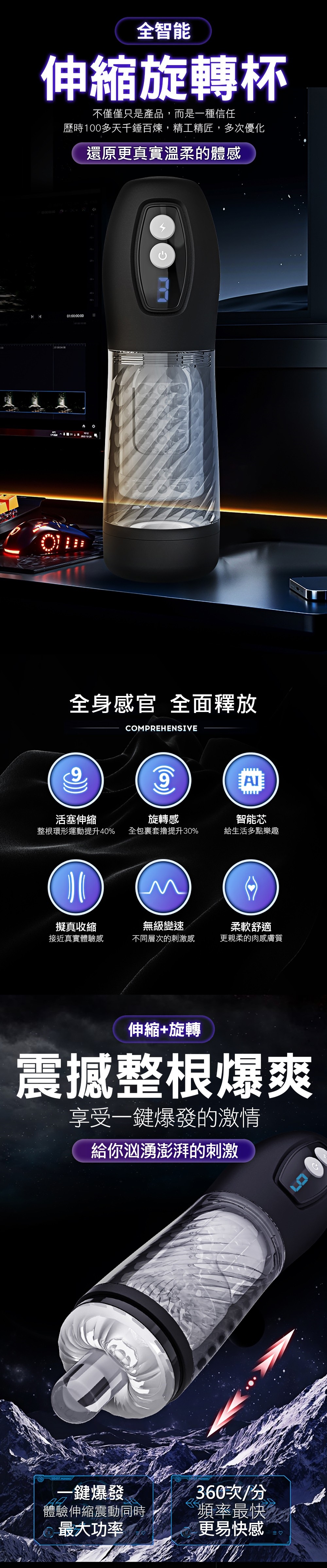Leten.電競艙炮王PRO新一代72絕技環 全自動活塞擼槍飛機杯