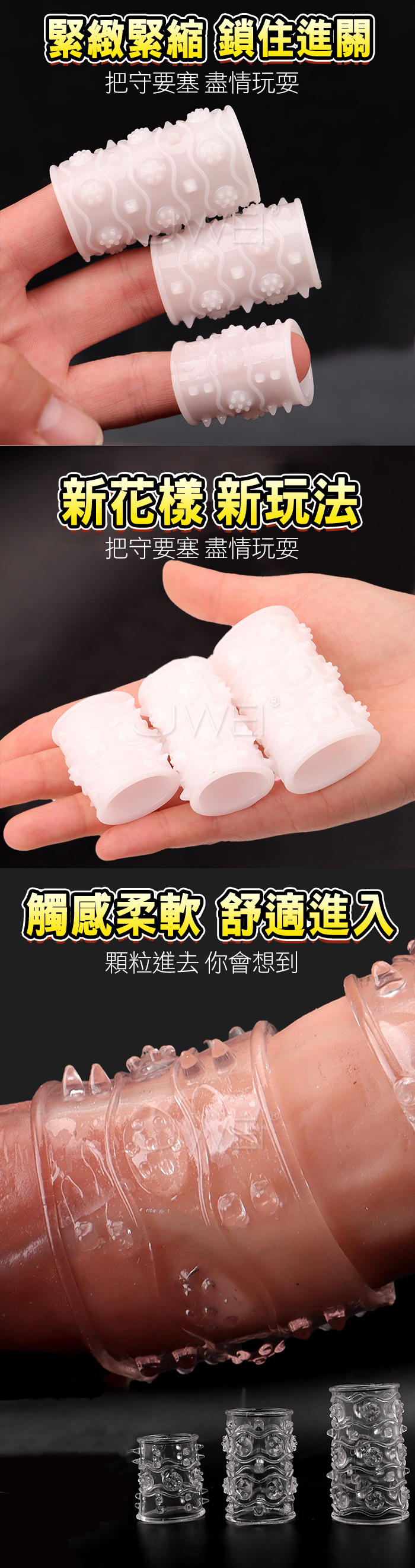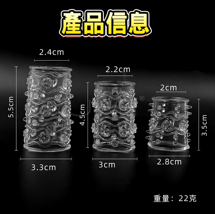 多點顆粒按摩,突起軟刺雙刺激 新款浮點組合環,高彈柔軟 鎖精長時 深度刺激G點,你自信了 她滿足了。 做個勇猛鬥士,趕緊帶上去戰鬥吧! 產品規格 ■尺寸:大小詳如圖片標示 ■重量:如圖片標示 ■材質:TPE