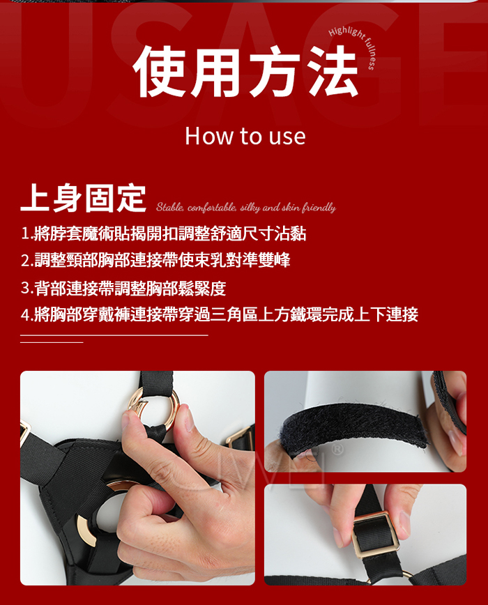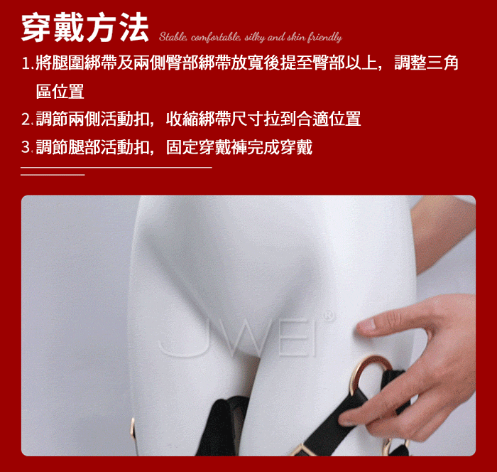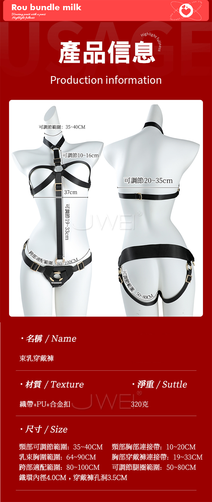 Les陽具穿戴褲 勒肉束乳 凸顯豐滿 三重穩固設計 穩固防滑,可盡情釋放野性 多尺寸調整 適合不同女性體型 盡顯從容身姿 貼合穩固 雙重空洞保持穿戴器具穩固好發力 產品規格 ■材質:織帶+PU+合金扣 ■功能:束乳、假陽具穿戴 ■尺寸:如圖示