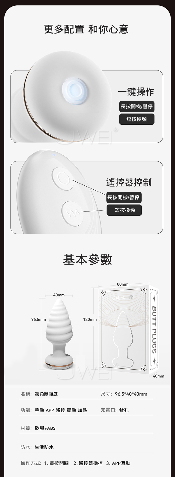 GALAKU.獨角獸 10段爽震螺旋結構 APP遠控智能加溫後庭肛塞