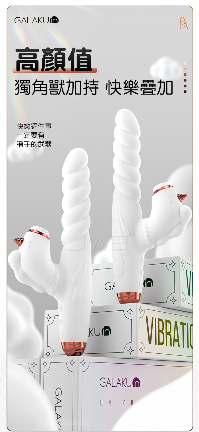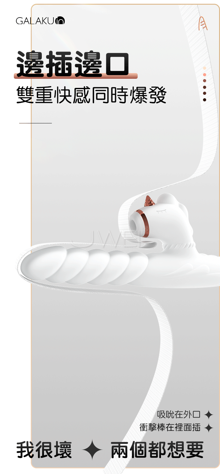 ►您現在的位置:首頁>GALAKU.獨角獸 10x10頻脈衝衝擊抽插+吸吮 螺旋G點震動按摩棒