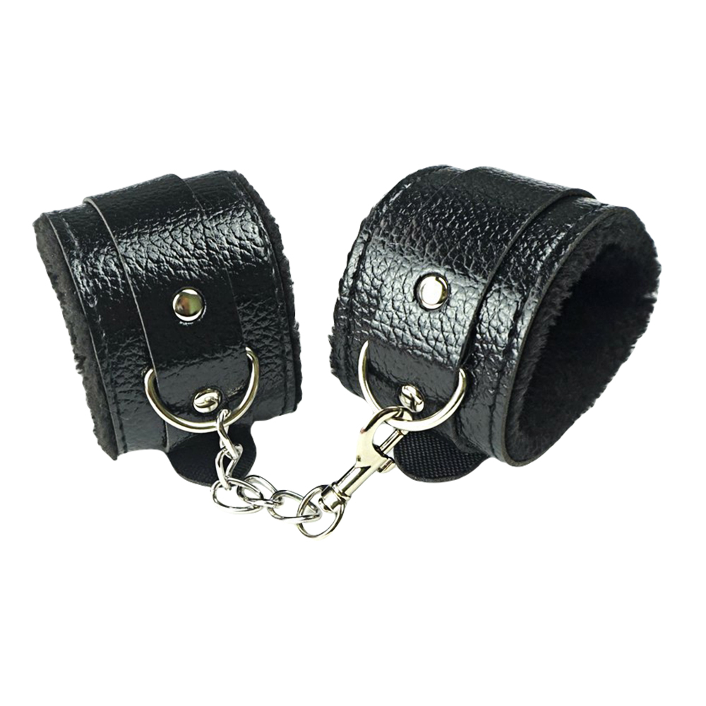 | 久愛.SM皮革紋理毛絨手銬-黑