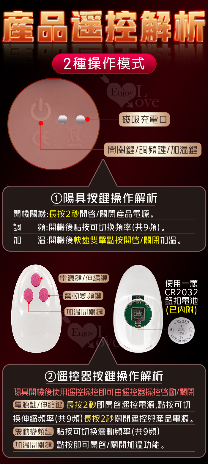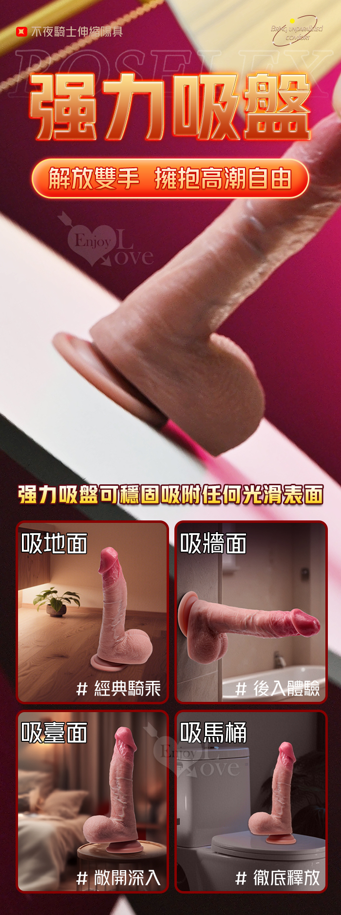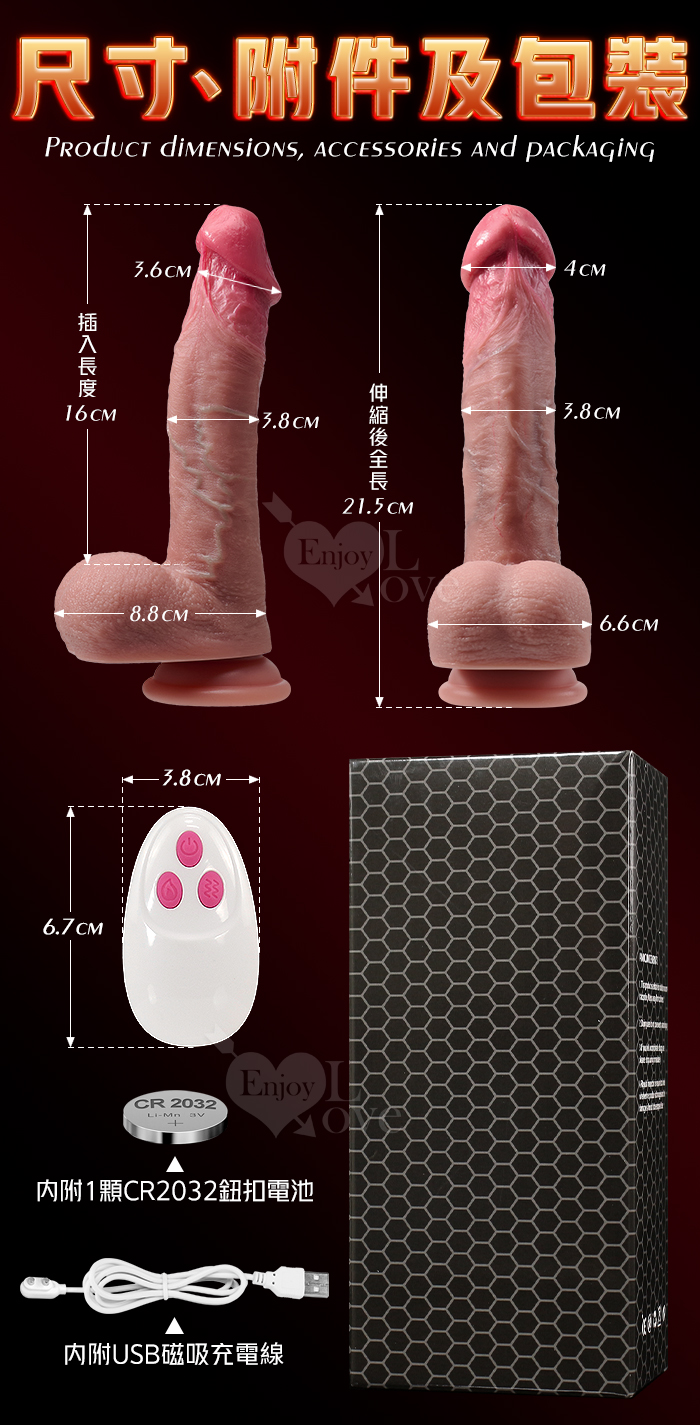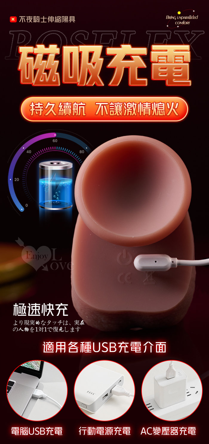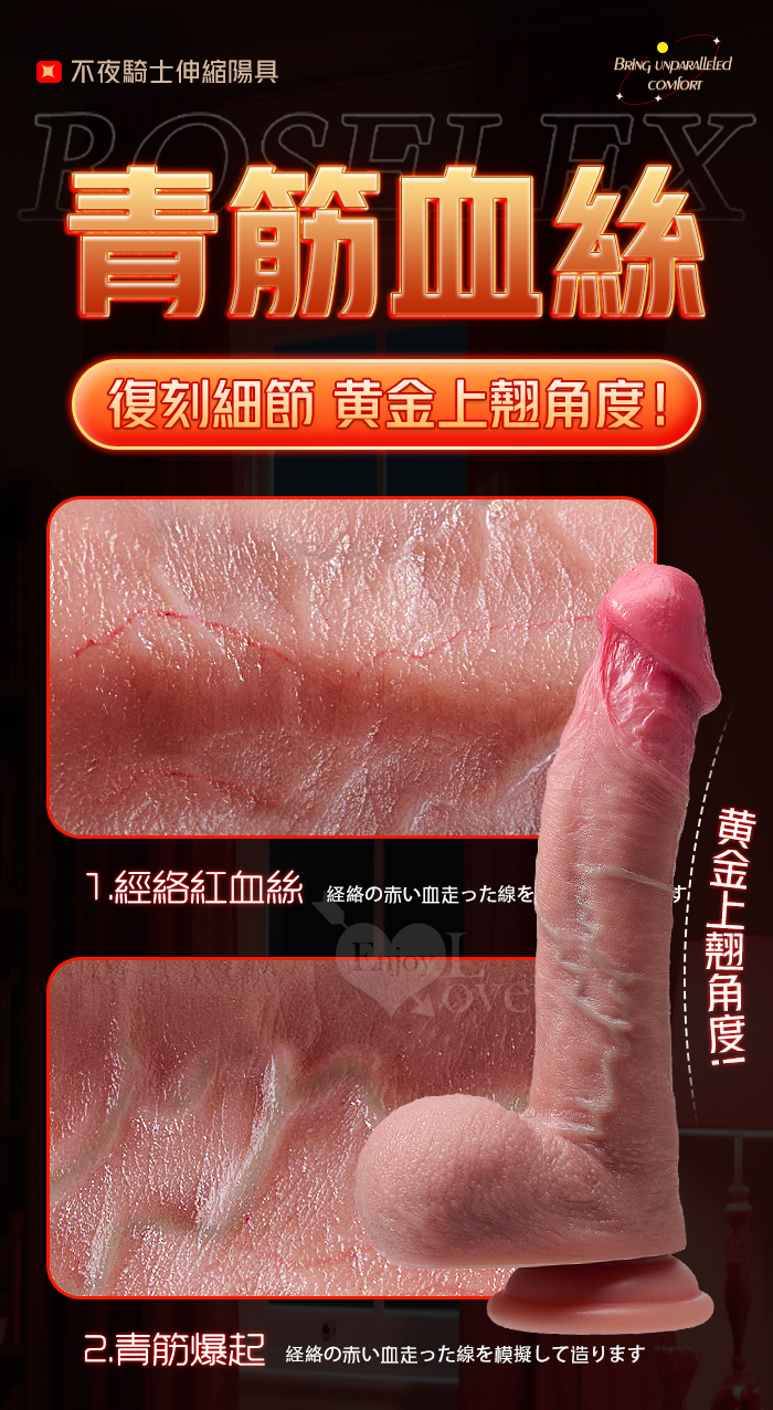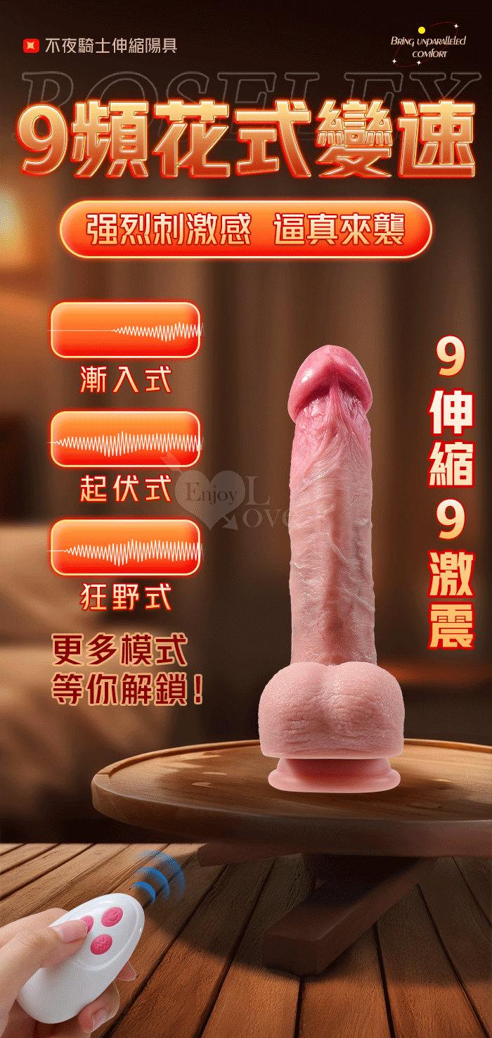 ROSELEX 勞樂斯 ‧ 不夜騎士 無線遙控9X9伸縮震動 超逼真5D肉感吸盤加溫陽具﹝液態矽膠+黃金上翹角度+磁吸充電﹞