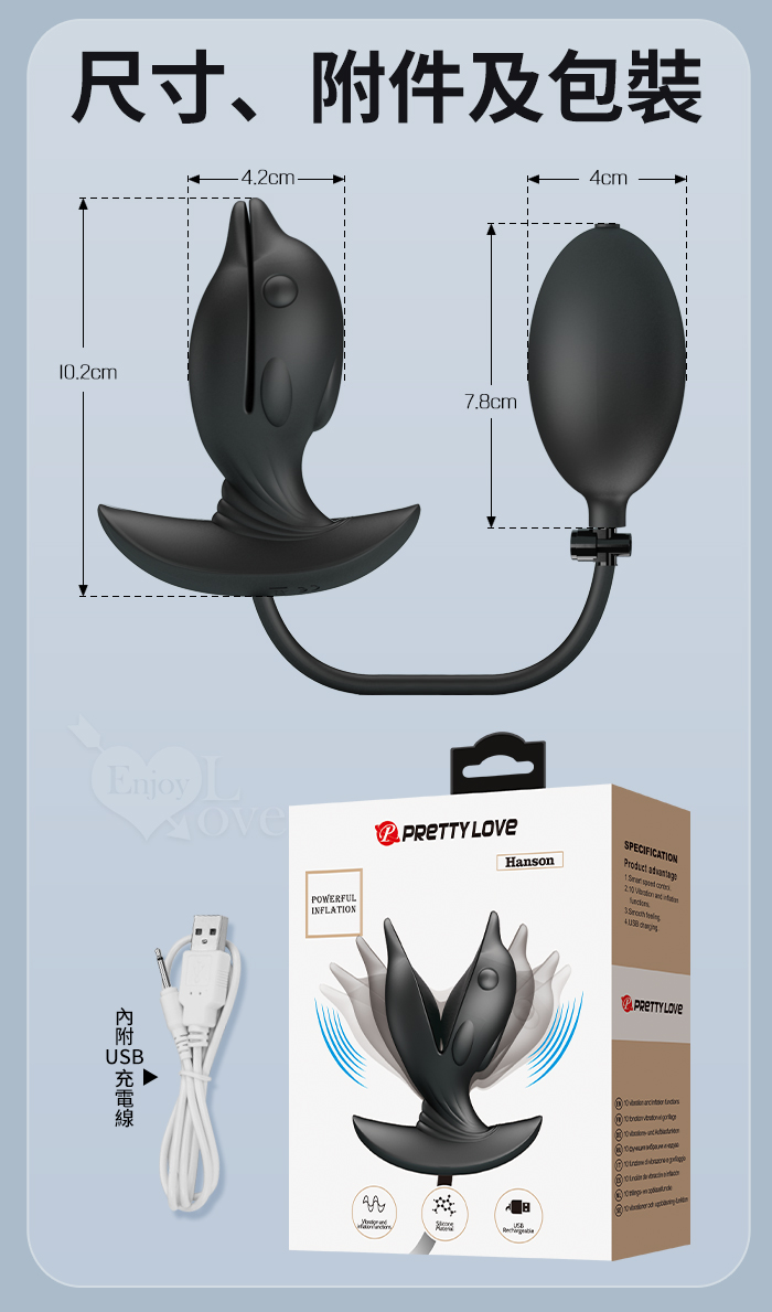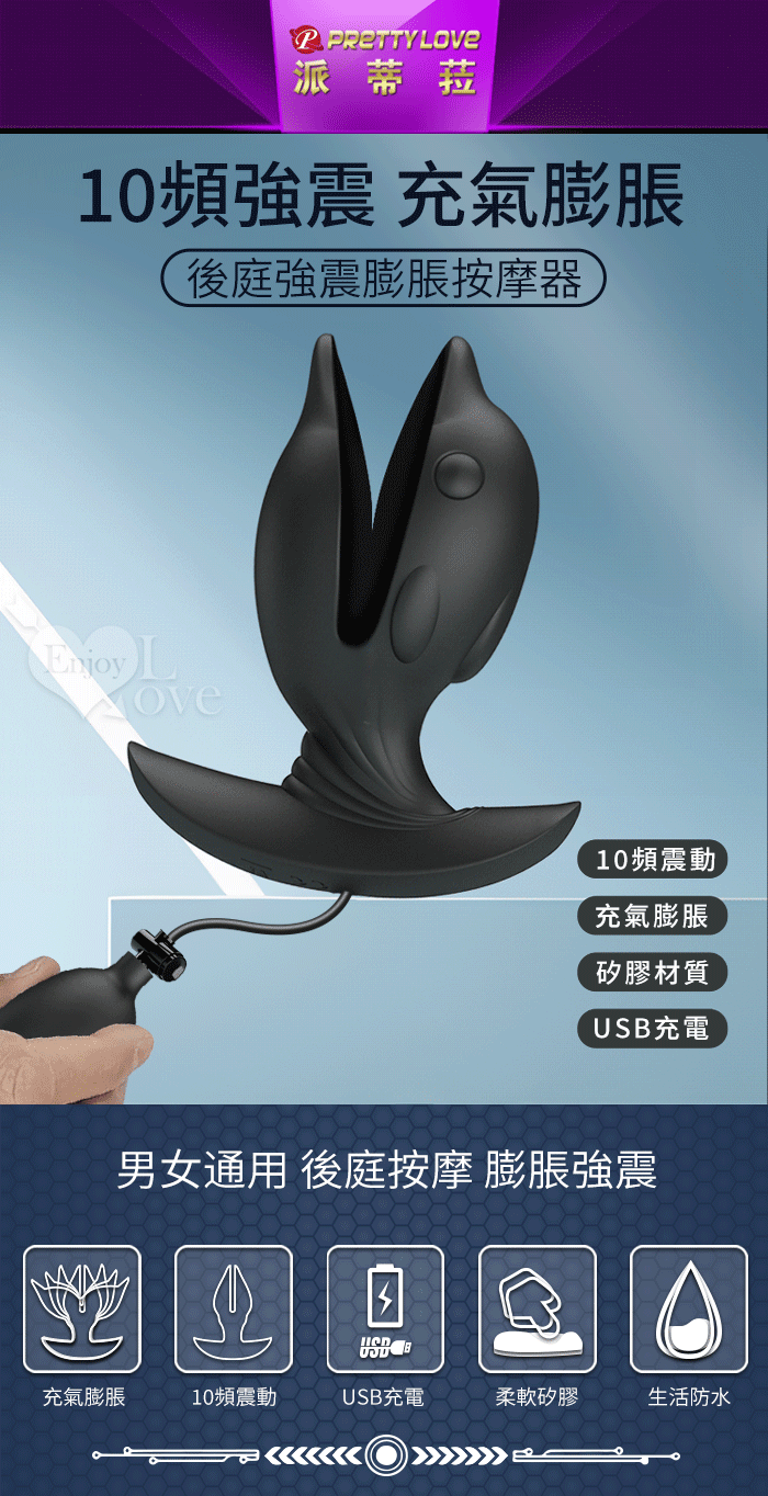 派蒂菈 ‧ Hanson 漢森 後庭充氣膨脹按摩擴肛器﹝10頻震動+海豚造型+男女通用+滑順矽膠﹞