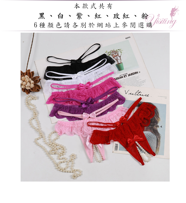 浪漫情人!輕膚柔紗拼接蕾絲迷人珍珠開襠丁字褲﹝粉﹞
