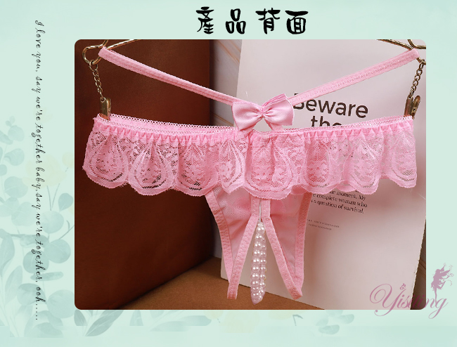 | 浪漫情人!輕膚柔紗拼接蕾絲迷人珍珠開襠丁字褲﹝粉﹞