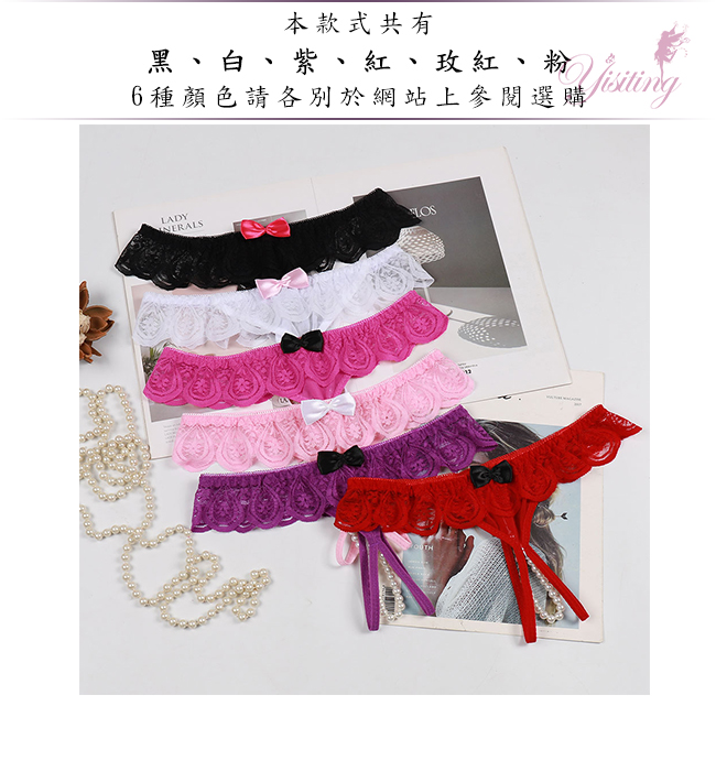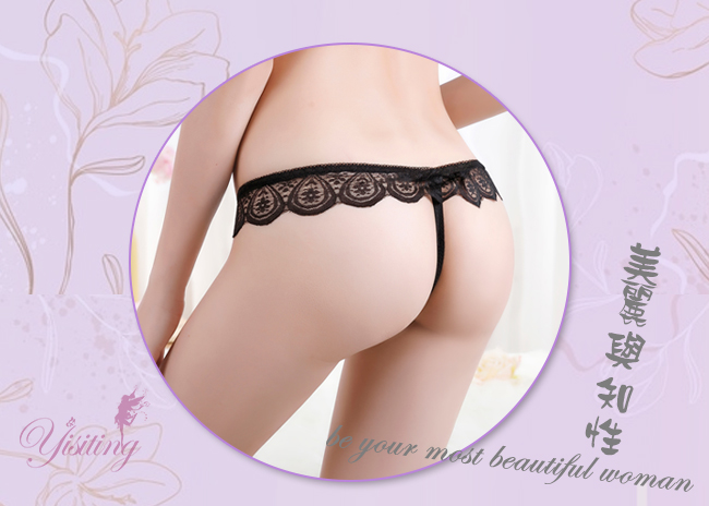 完美挑逗!蕾絲花邊露屁屁串珠開襠低腰褲﹝白﹞
