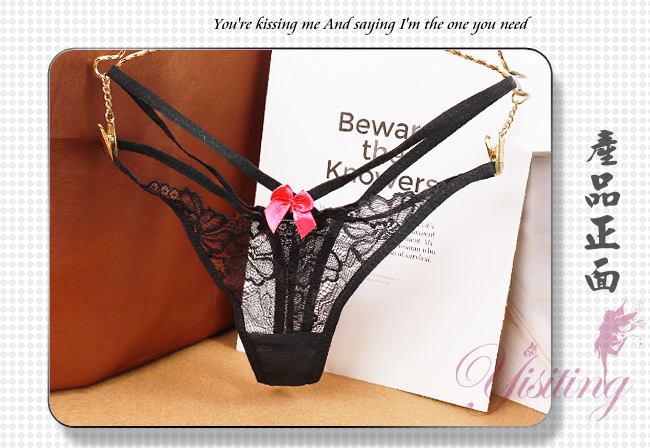 寵愛今夜!雙細帶蕾絲花朵性感美臀T字褲﹝黑﹞