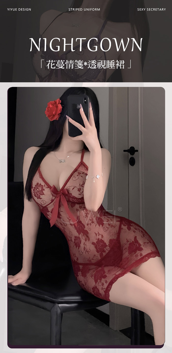 ►您現在的位置:首頁>枕邊禁語.純欲花蔓薄紗透視睡裙-棗紅色【睡裙+T褲】