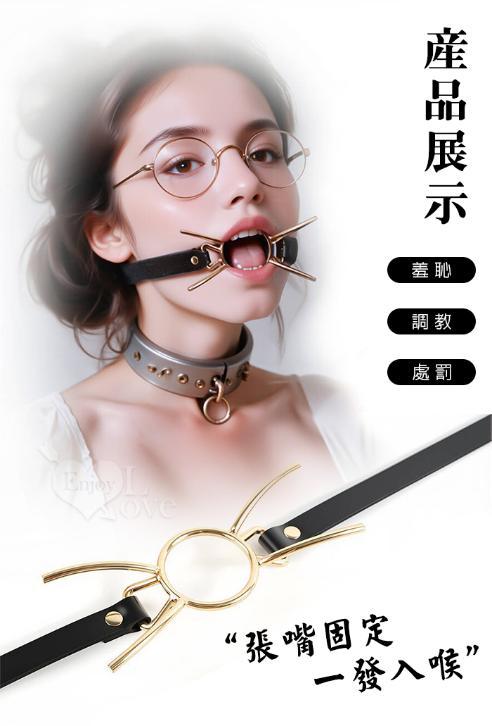 SM成人玩具~安可拉金色金屬貓鬚口枷調教強制張口深喉口塞