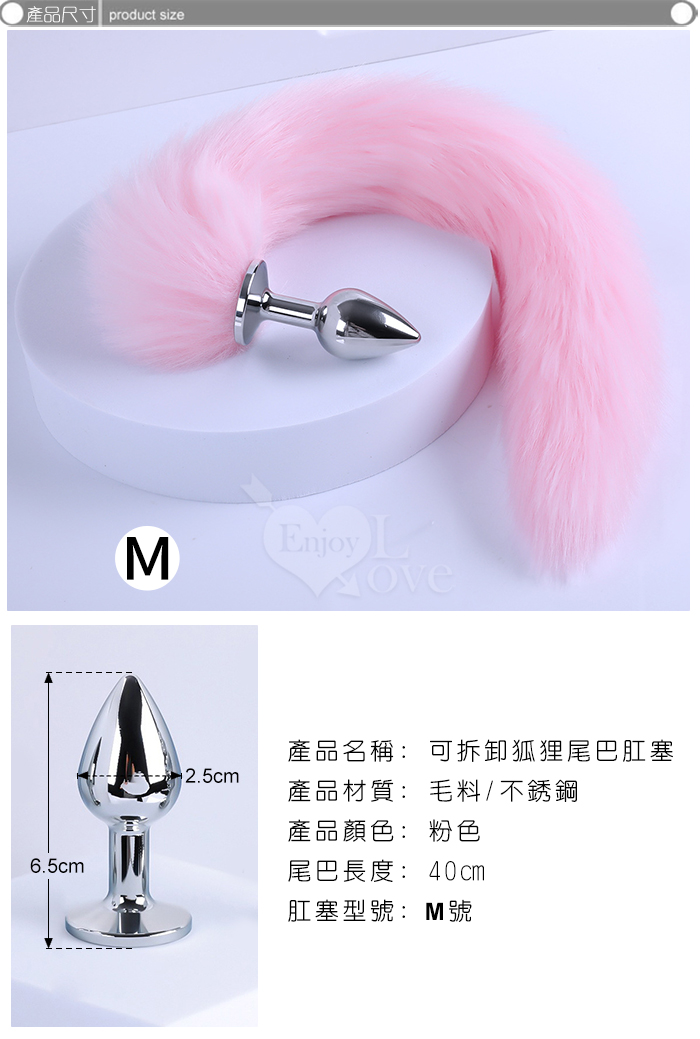 | 激性扮演狐狸精 ‧ 不銹鋼後庭肛塞+尾巴毛 - 粉﹝M 可組裝拆卸﹞