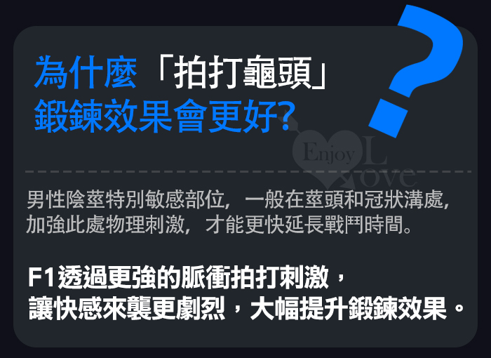 ►您現在的位置:首頁>F1訓練器 ‧ 10頻拍打震動+智能加溫 龜頭鍛鍊突破自我自慰器 - 可手機APP智控-具兩種操控模式﹝黑﹞