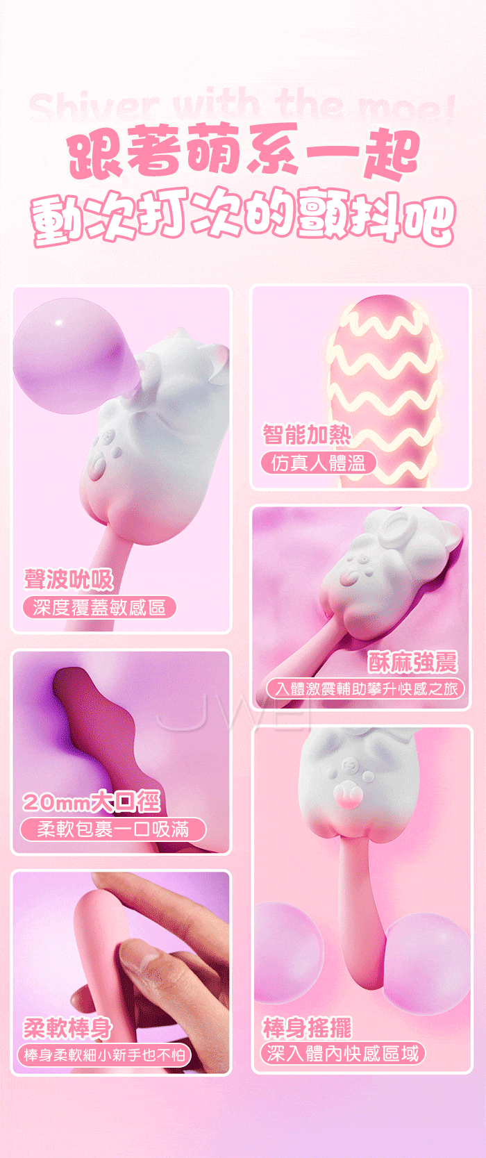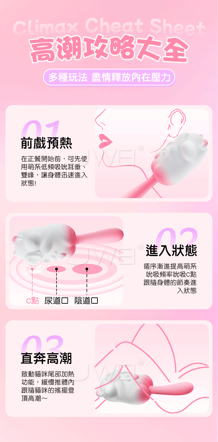 萌系拍打.8頻秒朝吮吸+10頻尾部搖擺攪動加溫按摩器