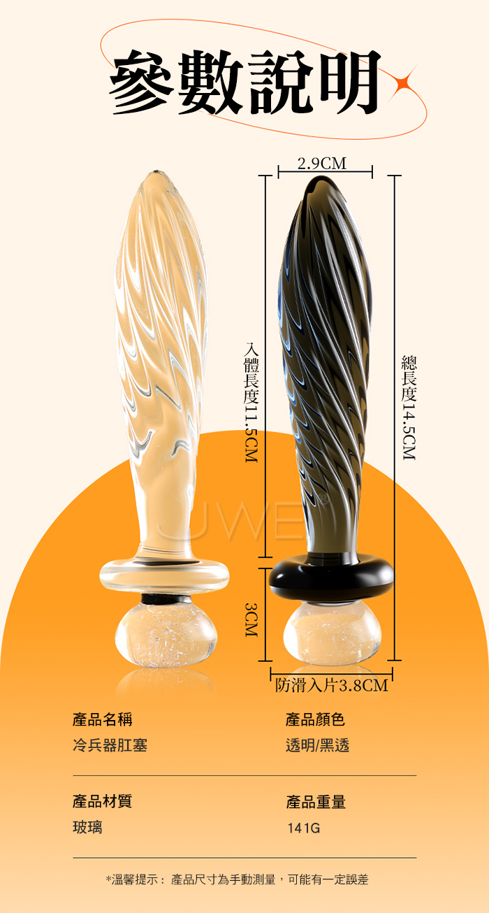 層層遞進 無痛滑入,圓潤尖頭 輕松深入私處,環形螺紋 觸碰撞擊敏感點 玻璃材質 三秒瞬感,體驗冰與火的碰撞,光滑無裂 入體更安心,璀璨星空頂 創造無限遐想 產品規格 ■材質: 玻璃 ■規格: 詳如圖片標示
