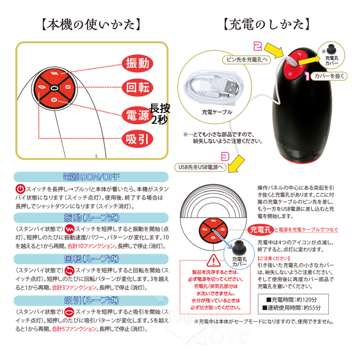 配備10種震動模式、3種淫蕩舔舐模式、5種吸吮咬合模式。