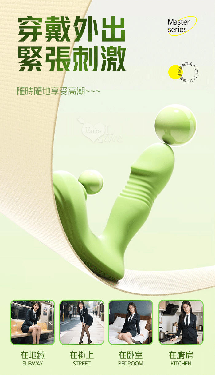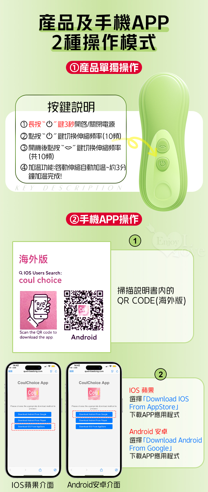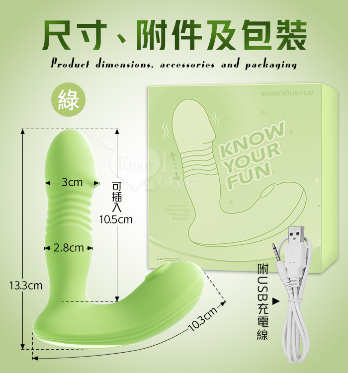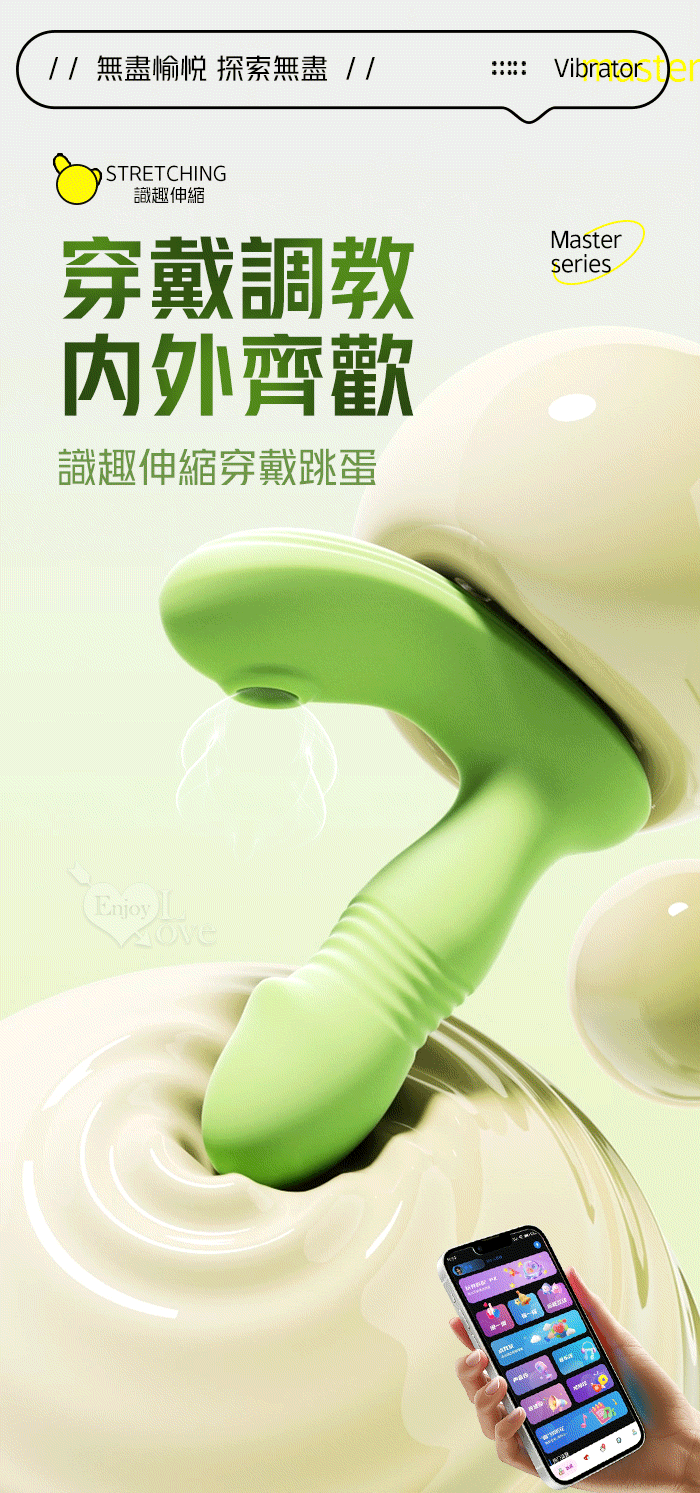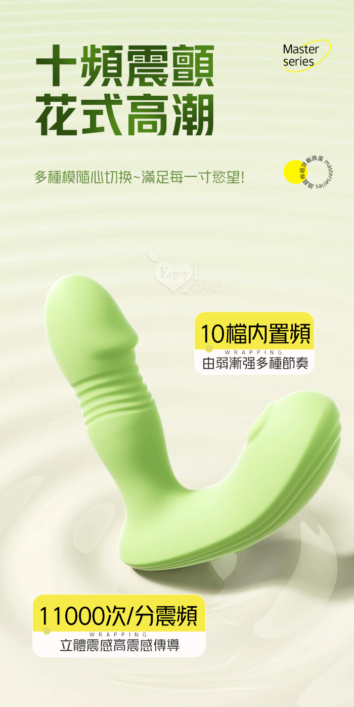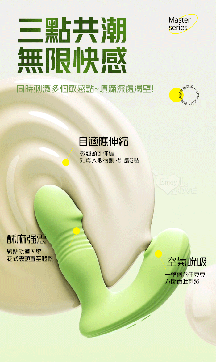 ROSELEX 勞樂斯 ‧ 識趣 10變頻伸縮+震動/吮吸內外齊歡智能加溫按摩器 - 可手機APP遙控﹝具兩種操控模式﹞綠色