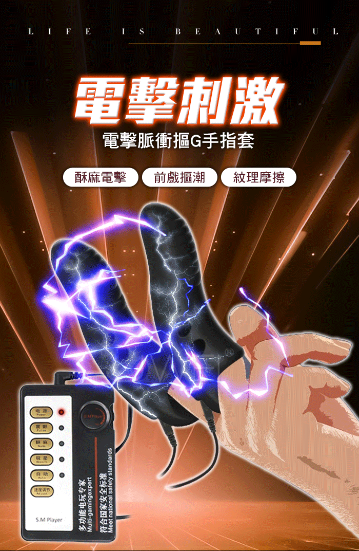 Electric shock脈衝電擊.10級強度微電流電擊刺激 紋理摩擦雙電擊摳G手指套【中文主機+電擊指套一對】