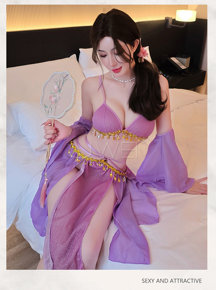 ►您現在的位置:首頁>情定西域.異域風情復古亮片拼接裙擺角色扮演服-紫色【胸罩+短裙+T褲+袖子*2】